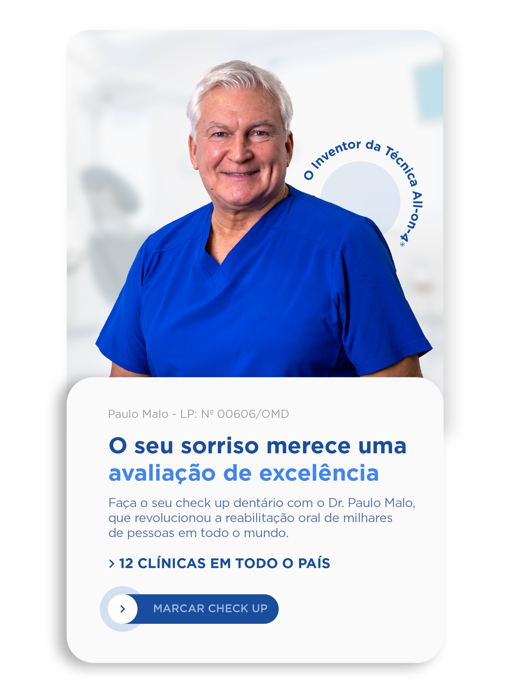 A nossa clínica assenta na experiência pioneira do Prof. Dr. Paulo Malo, criador da técnica All-on-4®, reconhecida mundialmente por transformar a reabilitação oral. Com protocolos clínicos exclusivos, tecnologia digital avançada e equipas altamente especializadas, dispomos de tratamentos previsíveis, seguros e personalizados. Cuidamos de cada paciente com rigor científico, inovação e excelência humana.